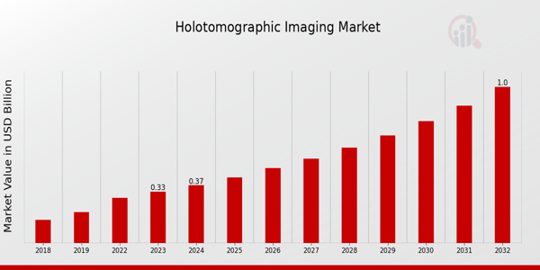홀로토모그래피 이미징 시장은 2024년부터 2032년까지 연평균 성장률(CAGR) 13.18%를 기록하며 2032년에는 10억 달러 규모에 이를 것으로 예상됩니다. 이러한 성장세는 토모큐브에게 상당한 시장 기회를 제공합니다.