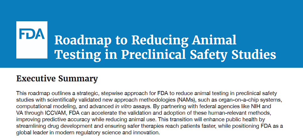 미국 식품의약국(FDA)은 지난 4월 10일 단클론항체 및 기타 약물 개발 과정에서 동물실험을 단계적으로 폐지하겠다는 정책로드맵을 발표했습니다. 기존 신약개발이 '세포실험–동물실험–임상시험'이라는 순차적 구조를 따랐다면, 앞으로 인공지능(AI) 기반 독성 예측과 인간 유래 3차원 생체모델(오가노이드 등)을 통해 동물실험 없이도 임상으로 진입할 수 있는 체계를 마련하겠다는 것입니다.신약 개발 과정에서 패러다임의 변화가 일어나고 있으며 그 중심에는 AI와 오가노이드가 놓여 있습니다.