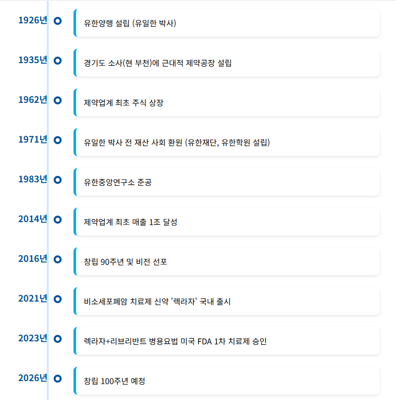 - 확고한 윤리적 지배구조: 창업자 유일한 박사의 사회적 소유 개념에 뿌리를 둔 독특한 지배구조와 50년 이상 유지된 전문 경영인 체제는 유한양행에 타의 추종을 불허하는 안정성과 신뢰를 제공합니다.