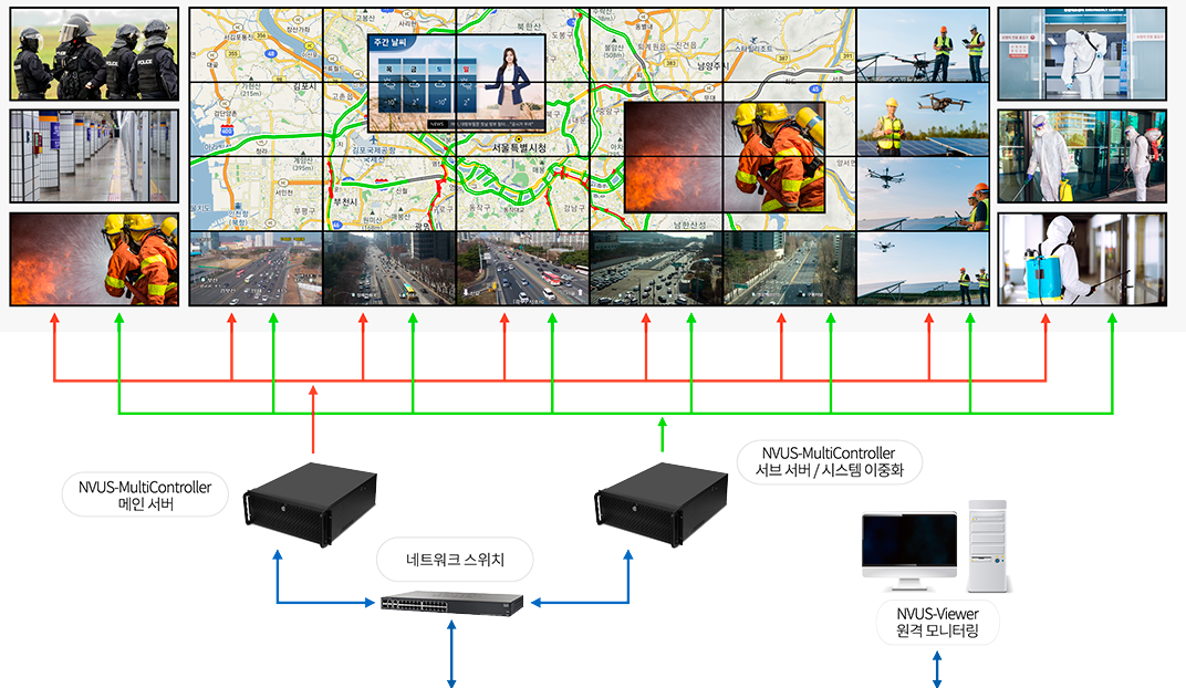 - NVUS: 2024년 SECON 전시회에서 선보인 네트워크 기반 고성능 비디오 월 통합 컨트롤 솔루션이다. 이는 대규모 디스플레이 시스템의 효율적인 관리를 가능하게 한다.