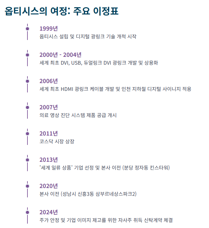 이러한 지속적인 신제품 출시와 기술 개발은 옵티시스가 강력한 R&D 파이프라인을 보유하고 있으며, 현재와 미래 시장의 요구를 충족시키기 위해 적극적으로 투자하고 있음을 보여 주고 있습니다. 특히 8K 해상도 지원에 대한 집중은 광링크 기술이 기존 구리선 대비 월등한 대역폭 이점을 제공하는 분야이므로, 옵티시스가 고성장 및 고마진이 예상되는 디스플레이 시장의 첨단 부문을 선점하려는 전략적 움직임으로 보여 집니다.